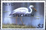 NEVIS 3$ grand héron blanc mangeant une grenouille